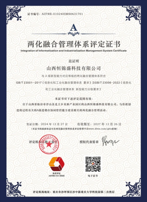 自2023年9月兩化融合貫標工作啟動以來,公司相關工作人員秉持著高度的敬業(yè)精神與專業(yè)素養(yǎng),全力以赴投入到項目的各個環(huán)節(jié)中,經過近一年四個月的努力,終于成功達成目標,于2024年12月27日取得兩化融合管理體系A級評定證書。兩化融合貫標,即貫徹《信息化和工業(yè)化融合管理體系》系列標準,是企業(yè)圍繞獲取可持續(xù)競爭優(yōu)勢,將信息化與工業(yè)化深度融合的過程。此項目旨在推動企業(yè)打造信息化環(huán)境下的新型能力,如數字化研發(fā)設計能力、智能化生產能力等。我公司作為傳統制造業(yè)企業(yè),在轉型升級過程中通過兩化融合貫標可實現生產方式、管理模式的變革,以應對激烈的市場競爭,提升企業(yè)競爭力,為公司創(chuàng)造新的增長點。山西省對兩化融合貫標企業(yè)有相應的獎勵政策,企業(yè)可以獲得資金支持和政策優(yōu)惠,有助于企業(yè)的持續(xù)發(fā)展和壯大。